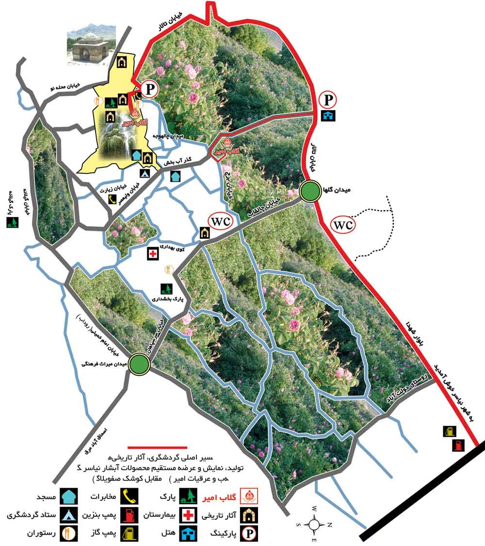 غار تاریخی رئیس و لایه کهن زیرین آن، چهار طاقی (آتشکده) ساسانی، بافت تاریخی با بناهای عمومی و مسکونی متعدد و گوناگون، باغهای گسترده، گلستانهای زیبا و قرارگیری در دامنه کوه به همراه چشمه اسکندریه و آبشار معروف نیاسر و باغ و کوشک تالار، این شهر را به یکی از شهرهای تاریخی و گردشگری کشور تبدیل نموده است. این شهر همه ساله و به خصوص در ایام گلابگیری پذیرای گردشگران و تورهای گردشگری از اقصی نقاط کشور است |